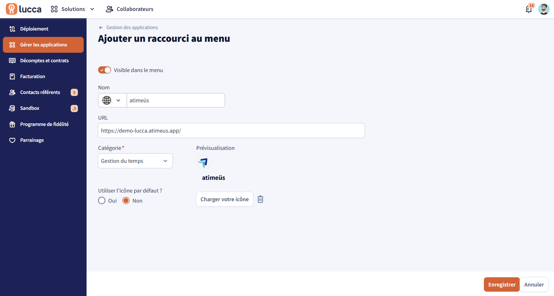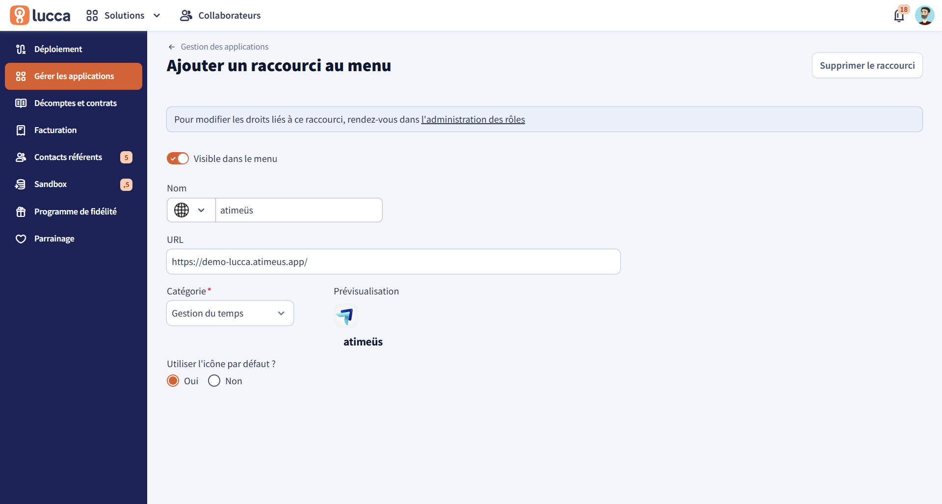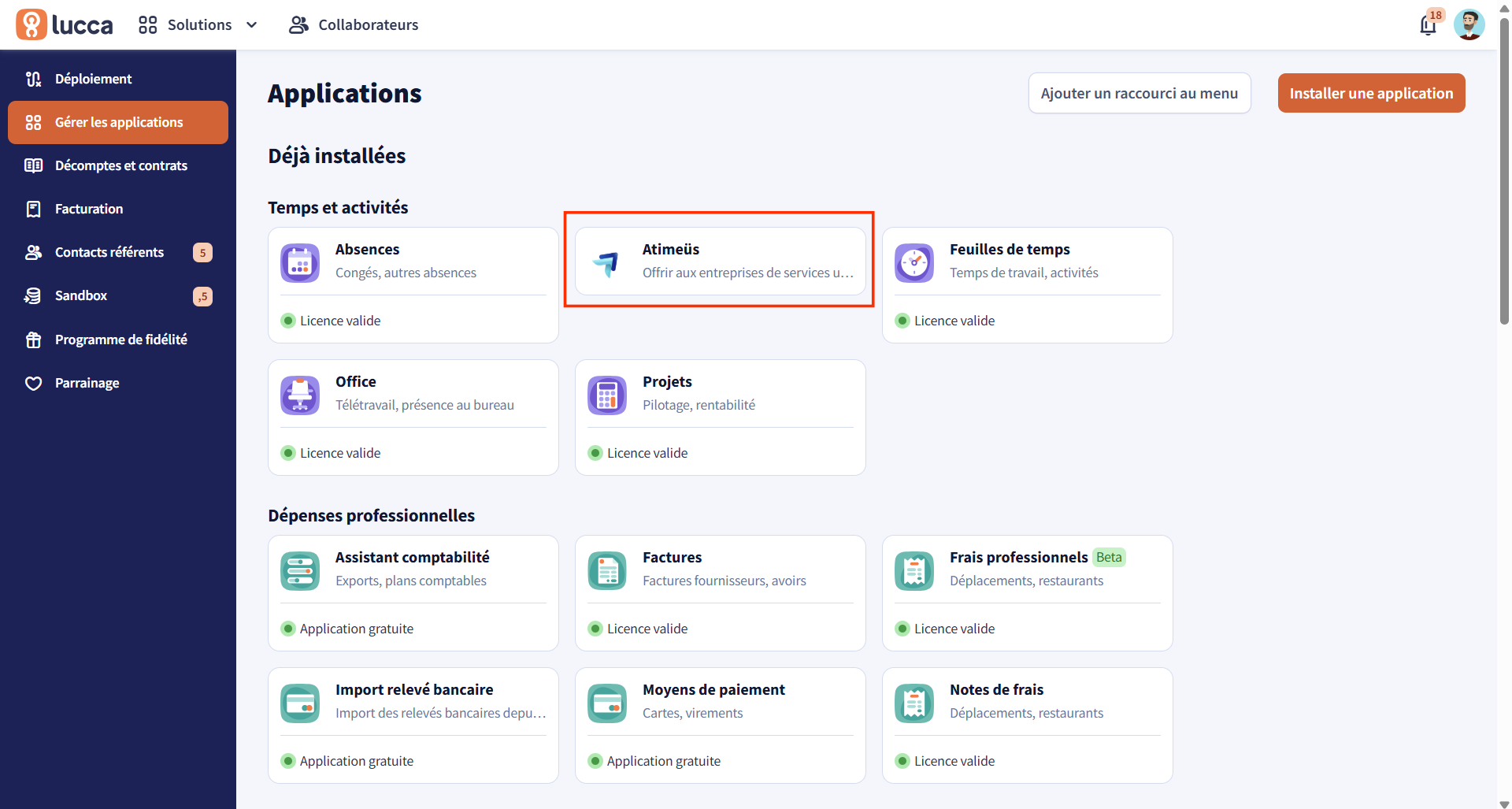 Afin de pouvoir connecter Atimeüs à Lucca, vous devez installer l'application Atimeüs dans Lucca et récupérer sa clé d'API.