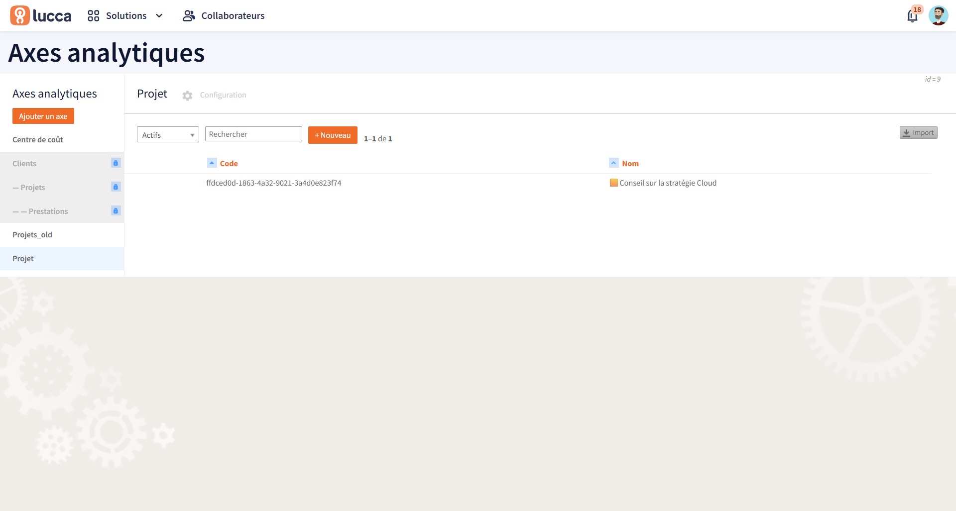 - Alimenter un axe analytique dans Lucca selon les affectations des collaborateurs sur les projets