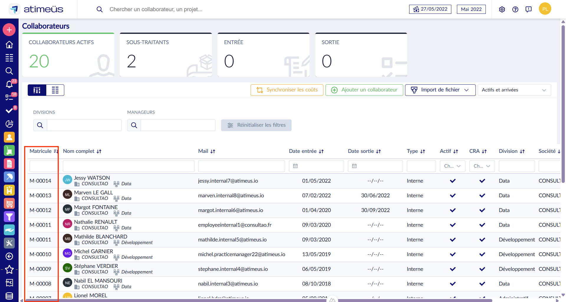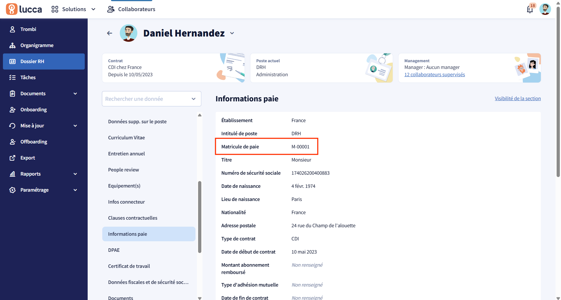 - Renseigner les Matricules de paie Lucca sur les fiches collaborateurs