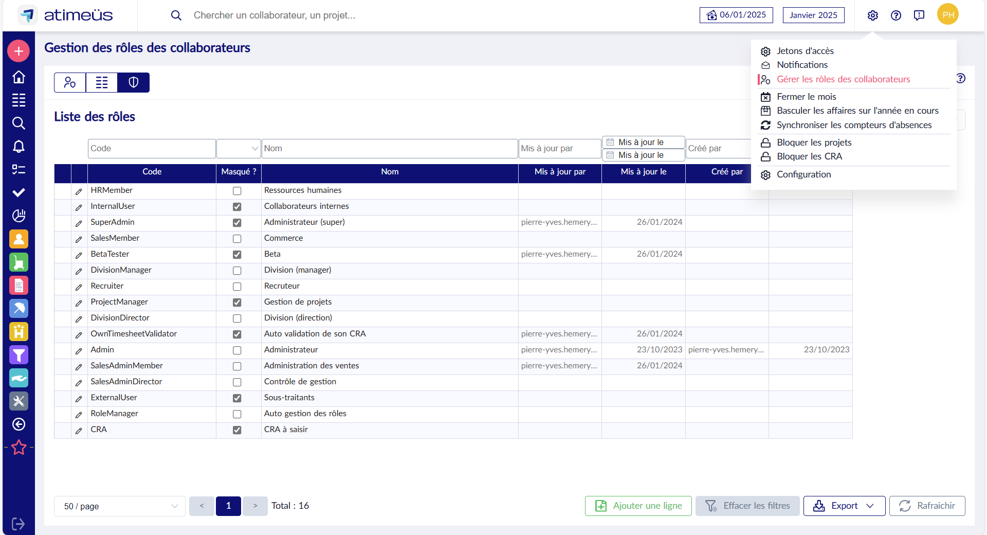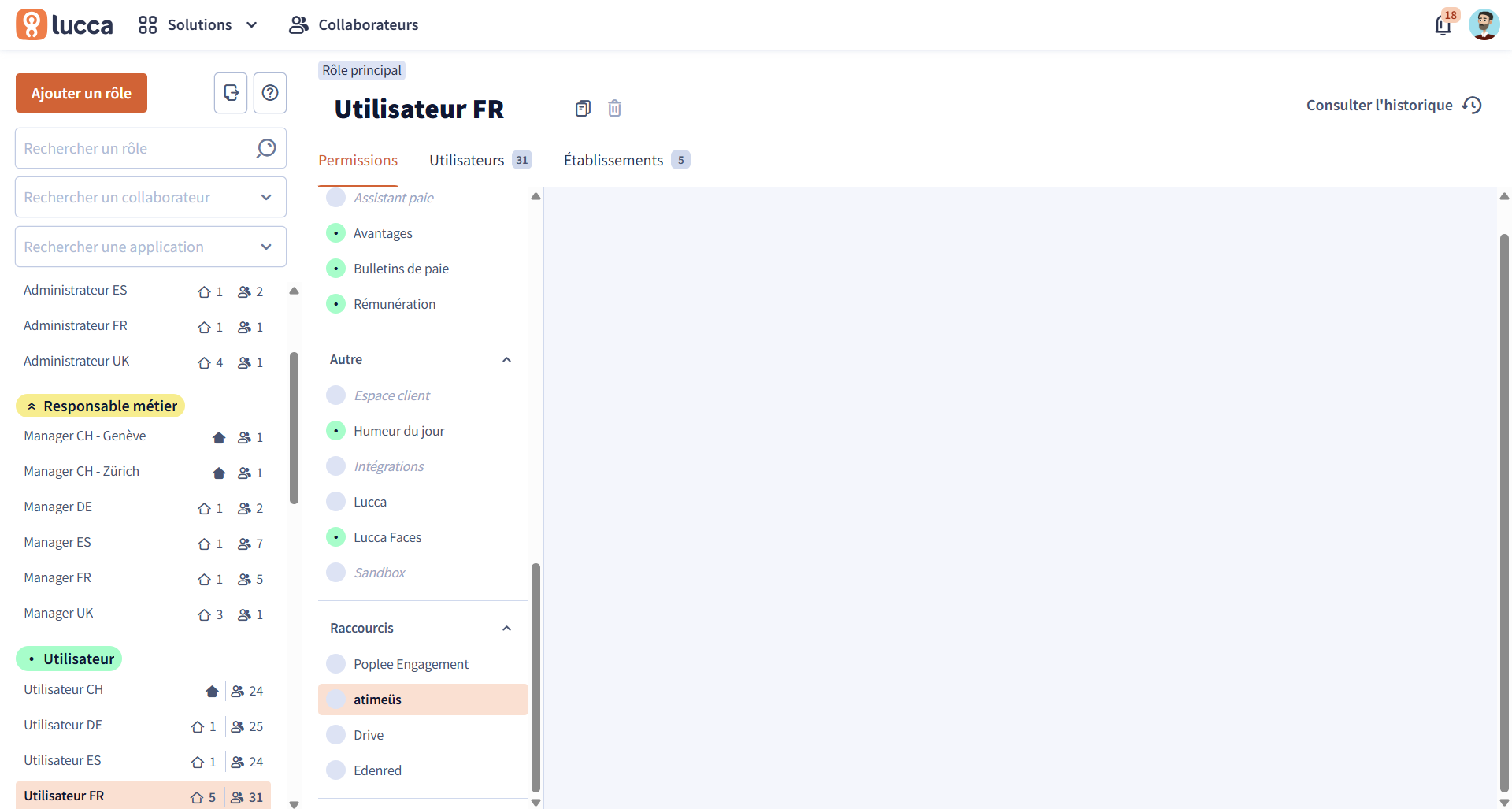 - Ouvrir Gérer les rôles des collaborateurs > Liste des rôles