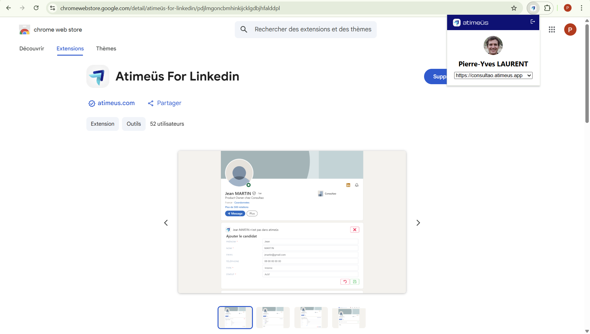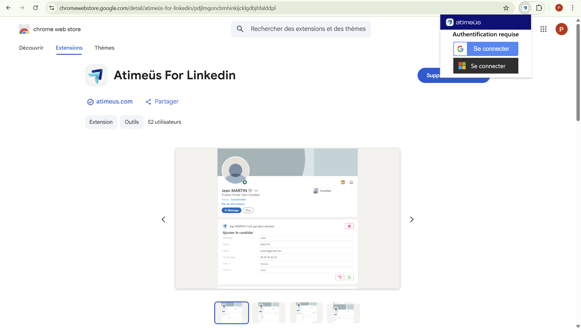 - Aller sur le store et rechercher l'extension Atimeüs For LinkedIn.