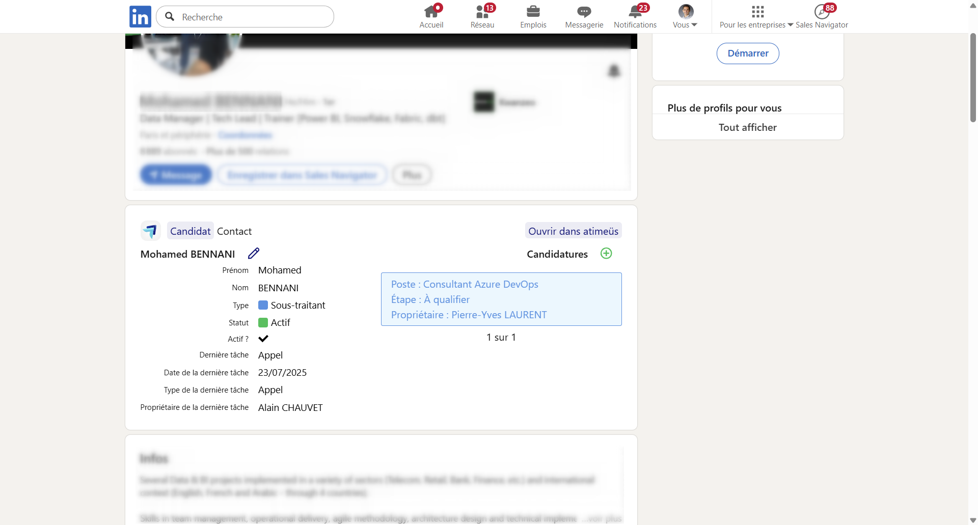 Atimeüs propose une extension Chrome pour interagir avec la base Candidat directement depuis une page profil dans LinkedIn :