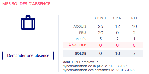La date de synchronisation de la paie, i.e. l'import des compteurs acquis / pris, est mise à jour lors de l'import du fichier.