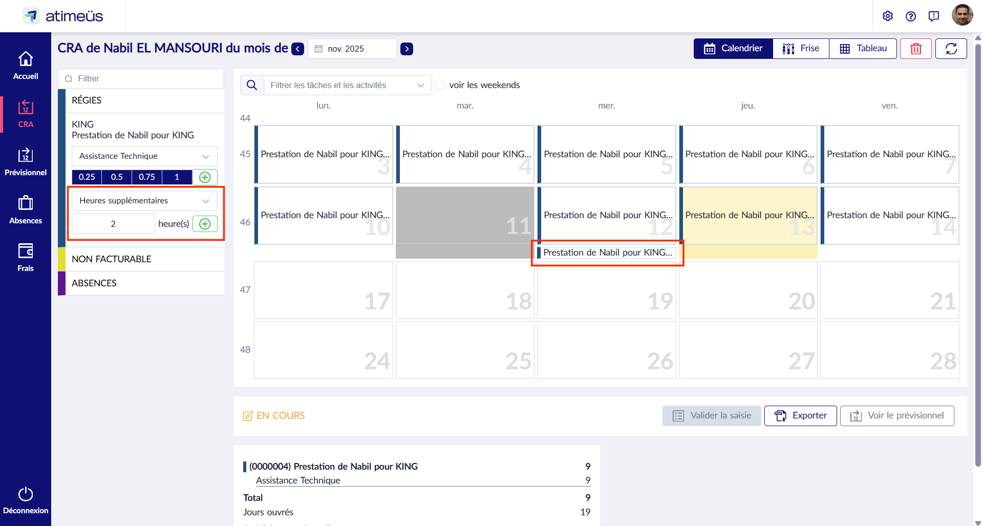 Une fois affecté, le collaborateur pourra imputer sur cette tâche exceptionnelle dans son CRA :
