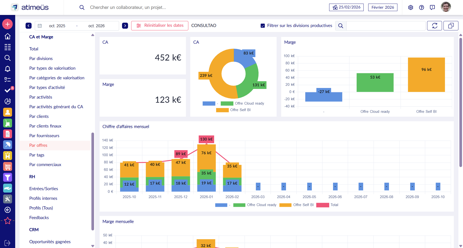 Le rapport CA et Marge par offres analyse donc les résultats pour chacune des offres.