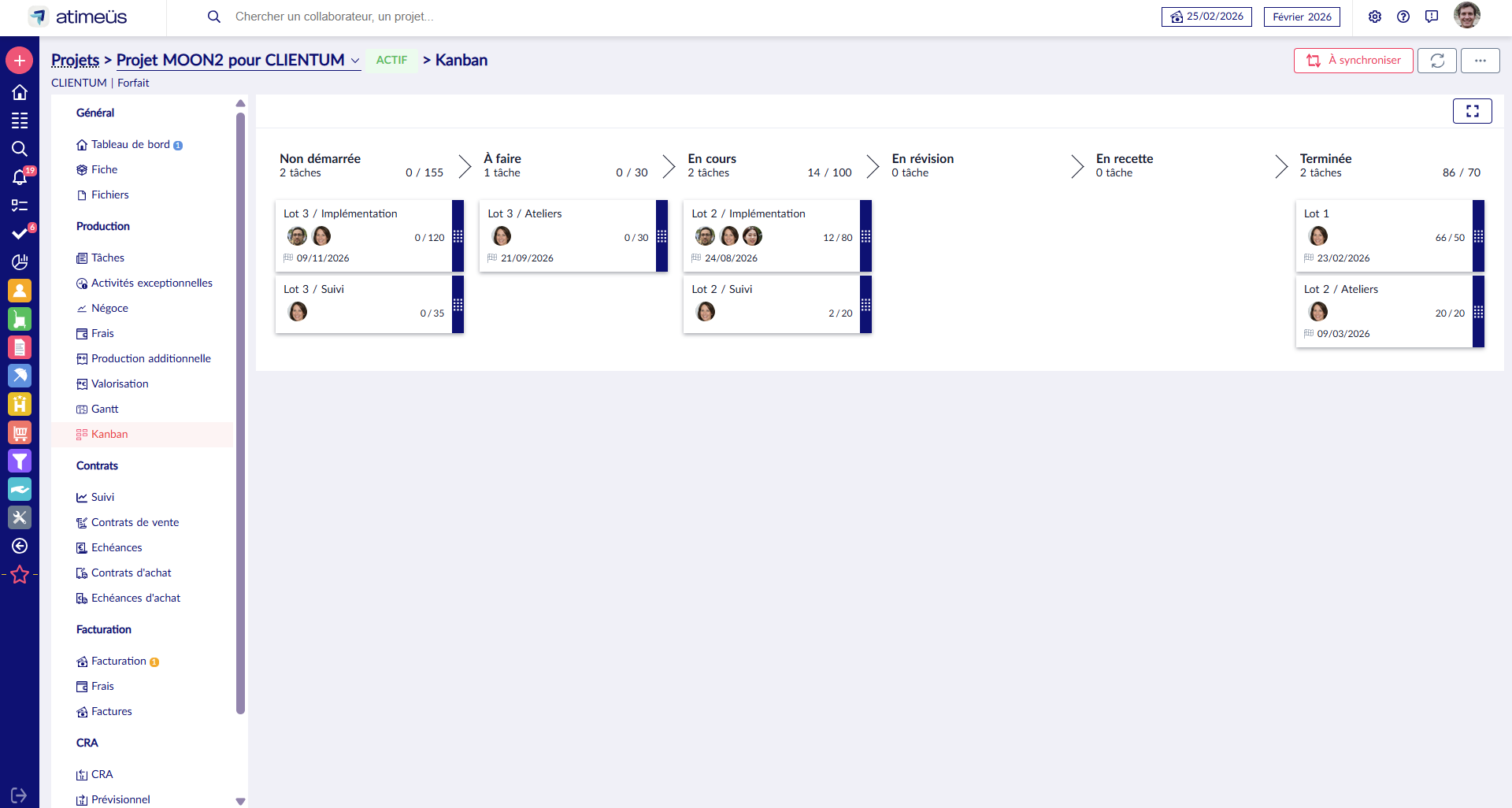 - N colonnes d'étapes = les étapes du pipeline de tâches du projet (par défaut : A faire, En cours, En révision, En recette)